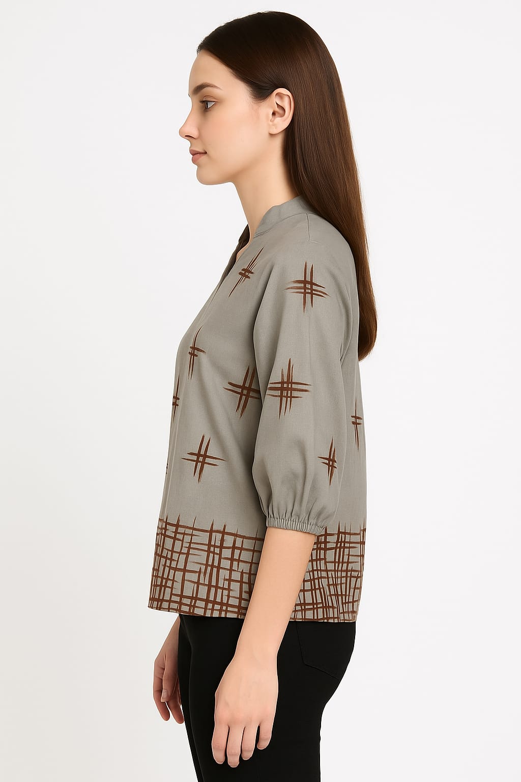 Women Grey Cotton Printed Stylish Top – Bhakti Womenswear