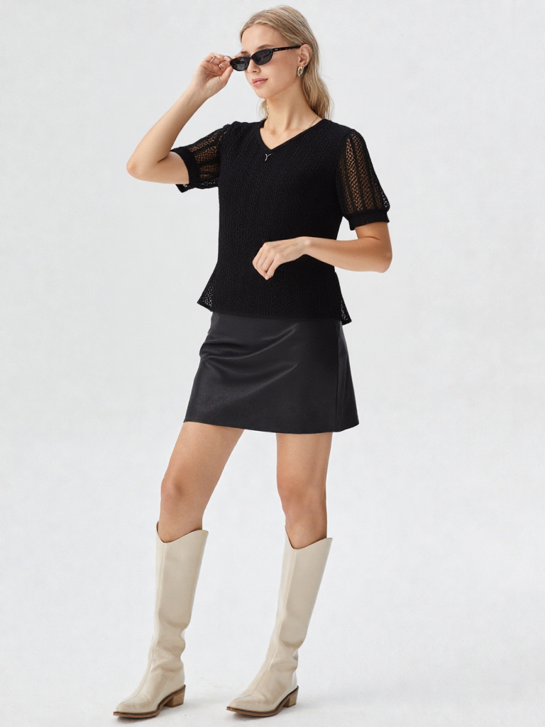 Stay effortlessly chic with this green knit casual top for women. Featuring a textured knit pattern, a flattering V-neckline, and comfortable short sleeves, this top blends modern style with everyday comfort. Ideal for office, casual outings, or brunches — pair it with jeans, skirts, or formal pants for a versatile look.