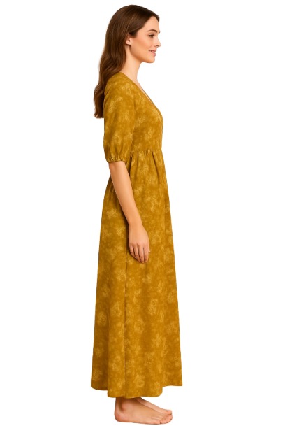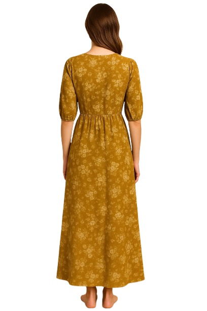 Mustard Floral Maxi Dress – Bhakti Women’s Wear