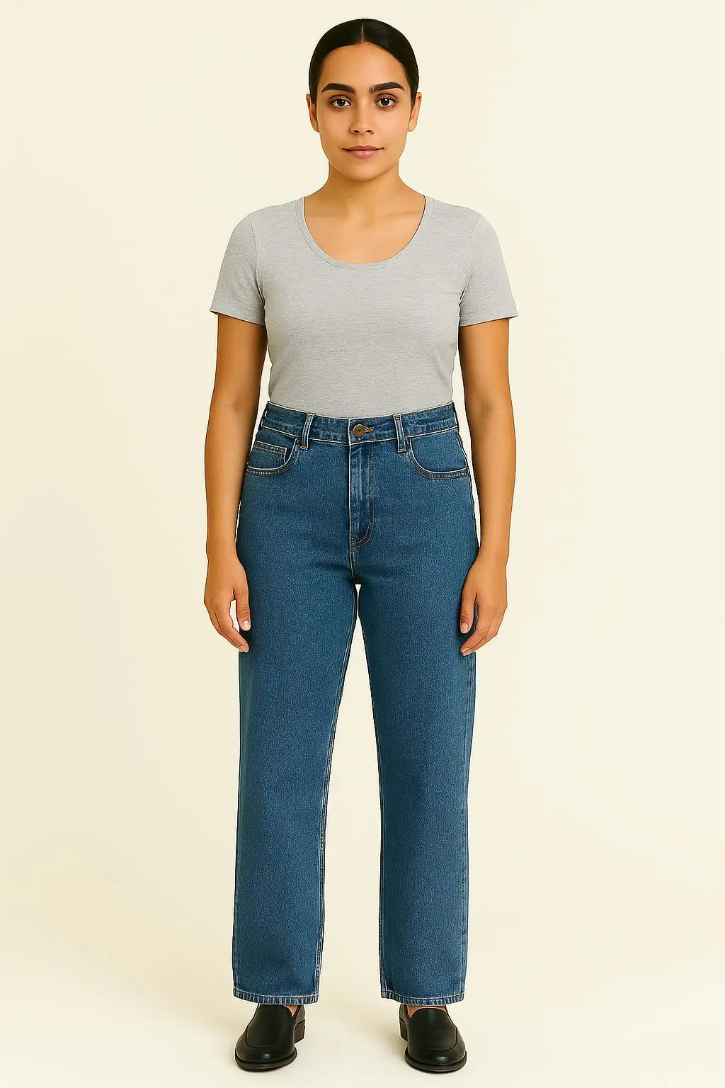 Upgrade your wardrobe with these stylish high-waisted straight leg women’s jeans in a timeless blue denim wash. Designed for everyday comfort and effortless style, these jeans offer a flattering high-rise fit that hugs the waist while providing a relaxed, straight-leg silhouette.